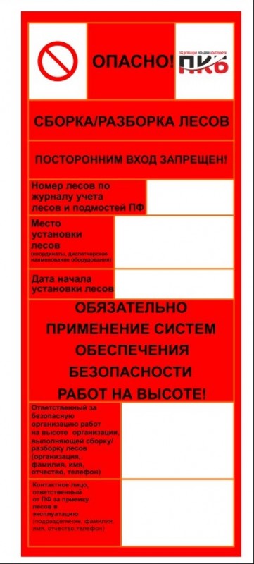 Вставка в держатель лесов для работы на высоте 210х85 мм, русифицированные, сделаны из пластика 0,3 мм толщиной, покрыты либо матовой, либо глянцевой ламинацией. Благодаря ламинации бирка перезаписываемая, т.е. многоразового использования, наносить и стирать текст можно не менее 6 раз. Текст можно наносить перманентным маркером, стирается техническим спиртом, либо растворителем Р-647. Размеры изготавливаем различные, по запросу.